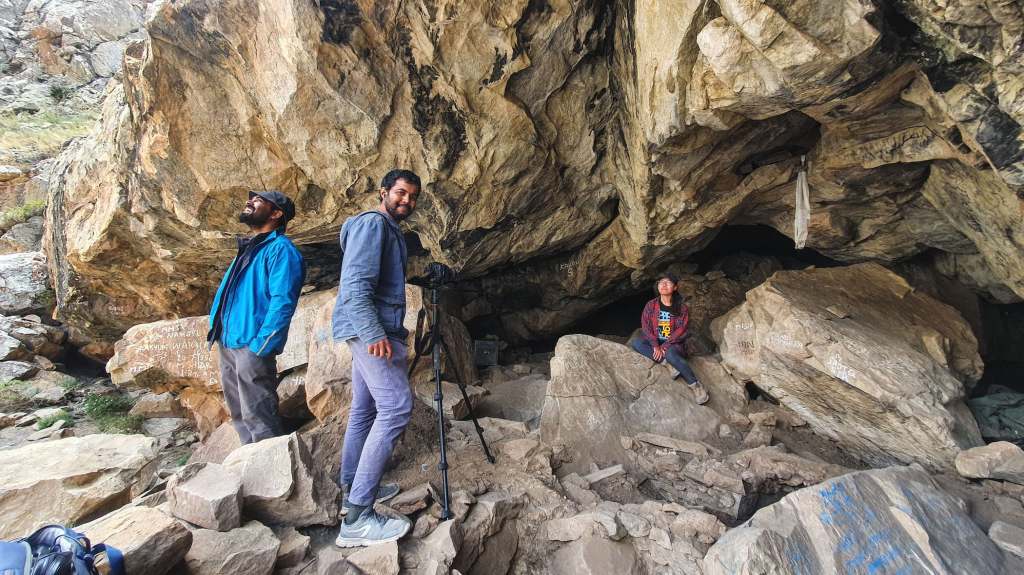 The cave is located at about 4000m above sea level. It is composed of several rooms connected by tunnels. From the second room onward, the floor is covered with human bones. The cave was discovered in 2015 during the surveys for the INTACH volume on the historical sites of Purig (see here-above). Following this find, a research project was set up by Pr. Veena Mushrif-Tripathy (Deccan College Post-Graduate & Research Institute, Pune) and Quentin Devers, with the support of Kacho Mumtaz Khan and Kacho Sikundar Khan.