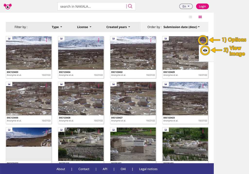 The images of this site are hosted on the online archiving platform Nakala, developed by the National Centre for Scientific Research (CNRS, Paris), Aix-Marseille University and Campus Condorcet. Here is a short manual on how to navigate it.